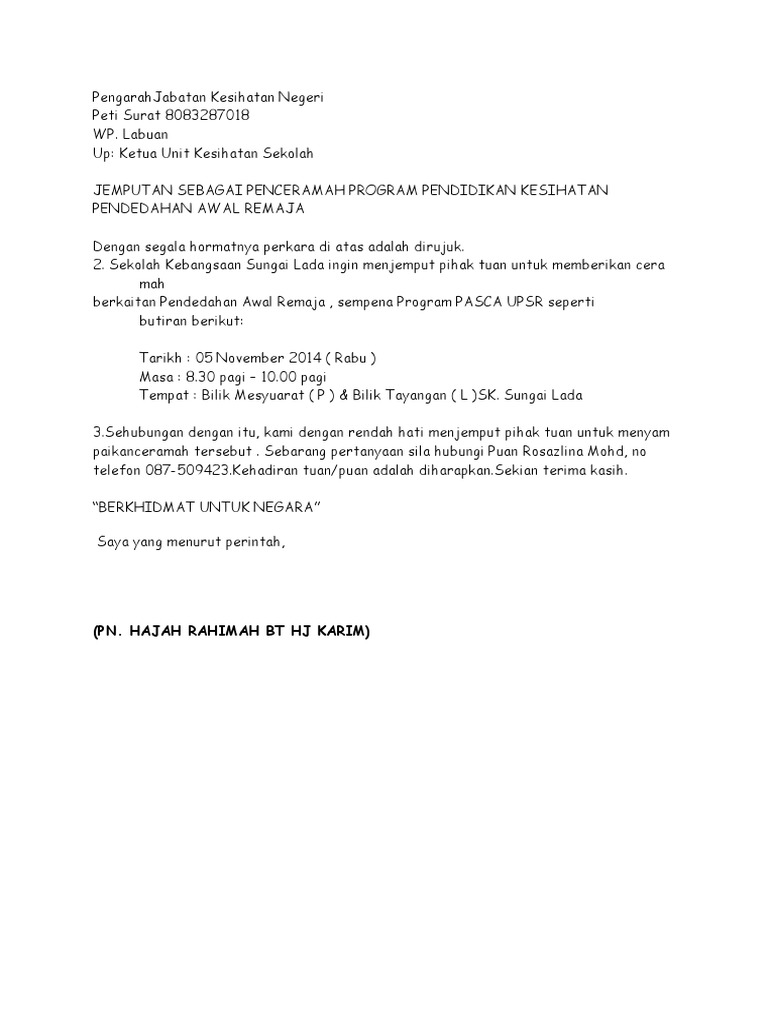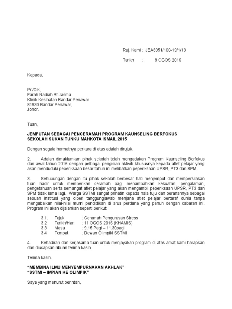 Contoh Surat Rasmi Jemputan Penceramah Contoh 43 Otosection
